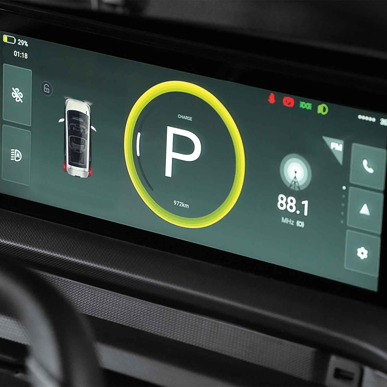 Extras: Alarmanlage, Wegfahrsperre, Bluetooth, USB Ladebuchse, Keyless Go, On-Bord Ladegerät, Klimaanlage, 12 Zoll Touchscreen, Einparkhilfe, Rückfahrkamera, Servolenkung, 16 Zoll Alufelgen, Schnellwechselakkus, elektronische Handbremse e Panoramaglasdach